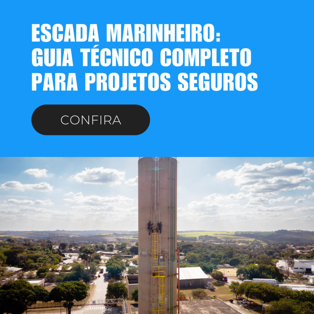 Além disso, a Escada Marinheiro moderna não pode mais ser encarada como um simples elemento de acesso. Hoje, ela faz parte de um sistema completo de segurança em altura.