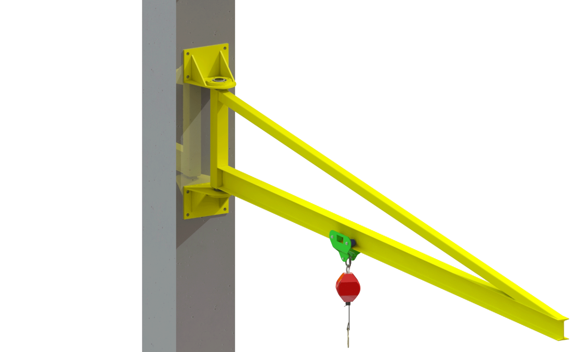 O Braço Giratório é ideal para locais onde exista a presença de pontes rolantes que atrapalham instalações na estrutura superior do galpão, sendo uma solução versátil para a sua empresa.