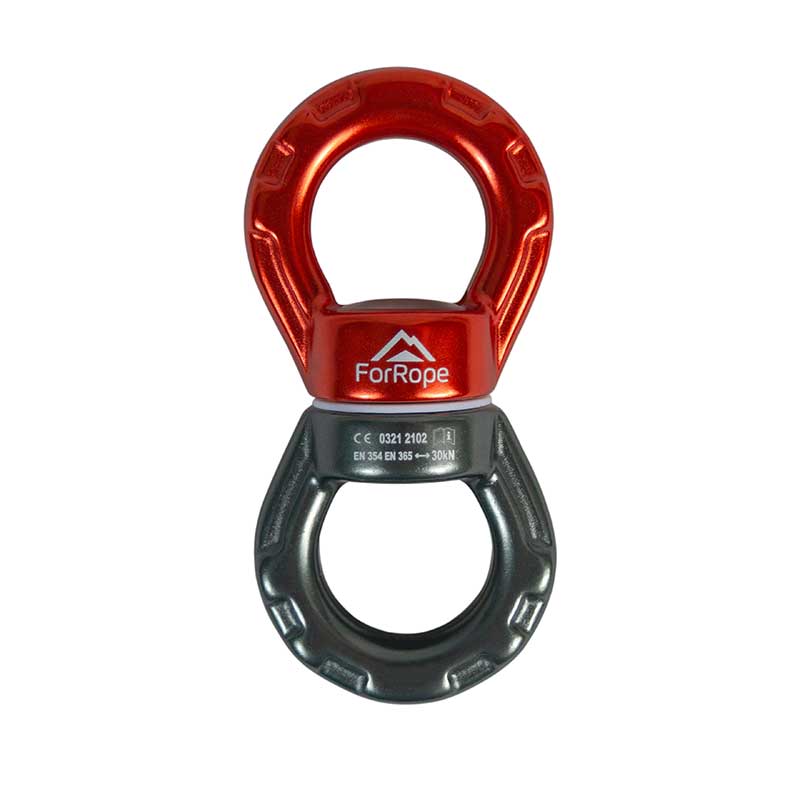 - Equipamento projetado para evitar o enrolamento da corda, garantindo maior estabilidade e eficiência nas atividades verticais. Quando utilizado entre a carga e o sistema, permite a rotação no eixo, mantendo o conjunto estável e seguro, o que facilita os serviços em altura e operações de resgate.