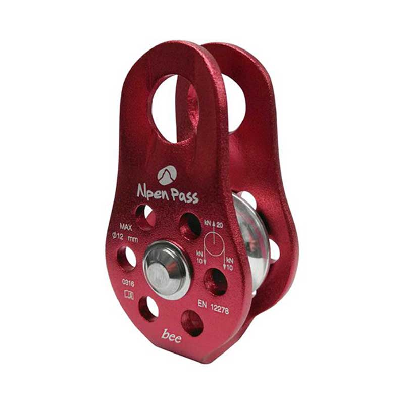- Polia simples com placas fixas e roldana com bucha de latão para cordas com até 12mm de diâmetro.